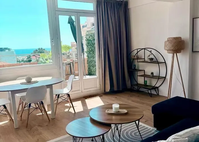 Located 6 km from Nice-Ville railway station, Votre Grand Cocon Nicois Appart Vue Mer Nice apartment is merely an 8-minute walk from the Phoenix Flower Park of Nice. The spacious apartment features a terrace, providing guests with seaside views of the sea.
